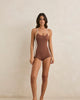 RHYTHM LILY RIB CROSS BACK SURF SHORT ONE PIECE - CHOCOLATE
